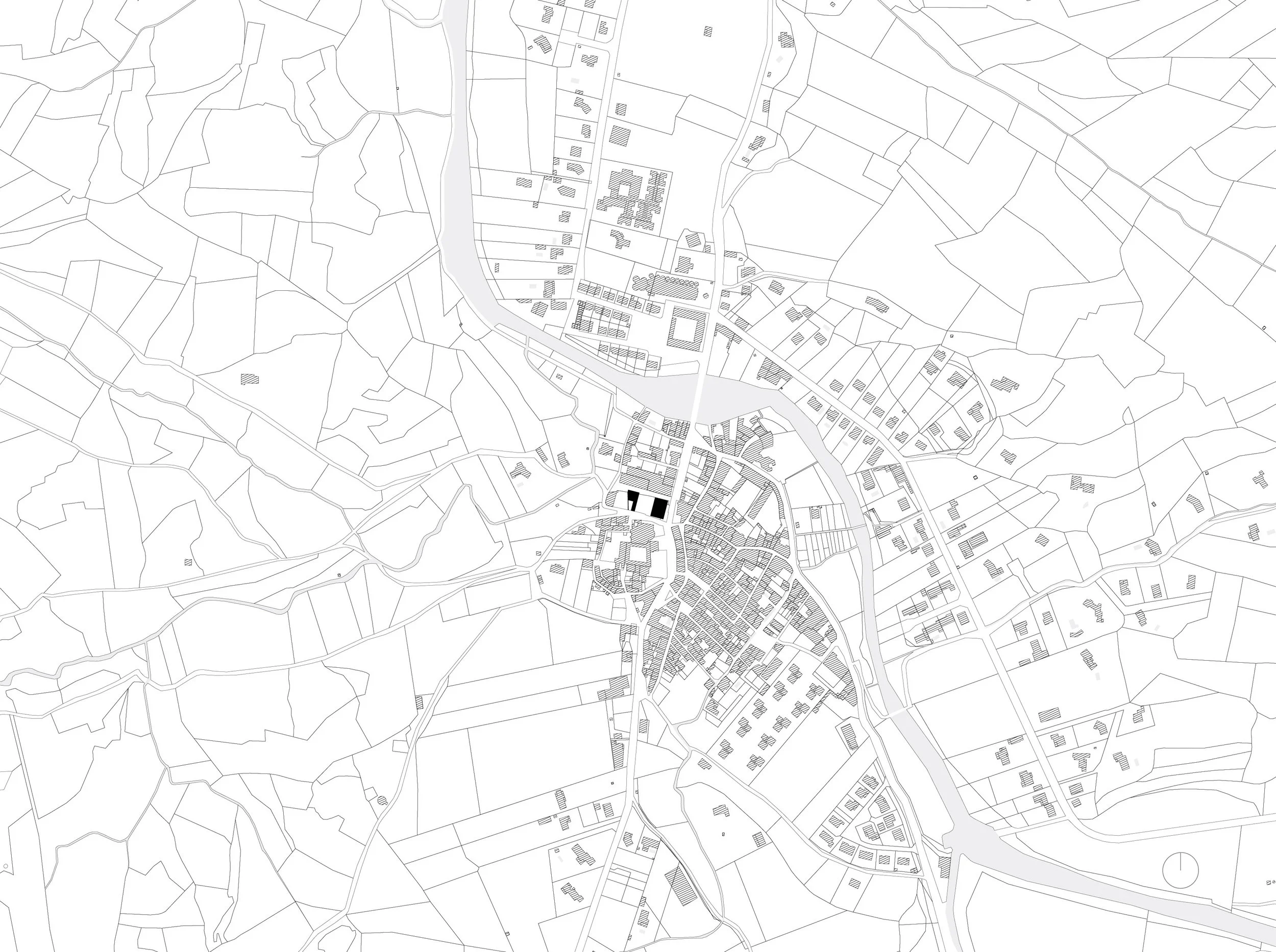 Le clocher, point culminant de l'ancien fort, domine la façade nord de l'abbaye. Ce repère visuel imposant structure l'ensemble de la composition : la nouvelle place est alignée sur son axe. Cette disposition est renforcée par le cours d'eau alimenté par une source située à l'intérieur du fort, dont les eaux sont canalisées dans un canal central qui traverse la place et souligne son orientation spatiale. Les dimensions de la place sont similaires à celles du cloître de l'abbaye. Afin de préserver la continuité du tissu urbain et de respecter le monument, le projet s'inspire de l'architecture vernaculaire de la région, tant dans le volume des nouveaux bâtiments que dans leurs détails constructifs. Il ne s'agit toutefois pas d'un pastiche : les façades et les ouvertures sont résolument contemporaines, exprimant un dialogue respectueux mais affirmé avec leur contexte historique.