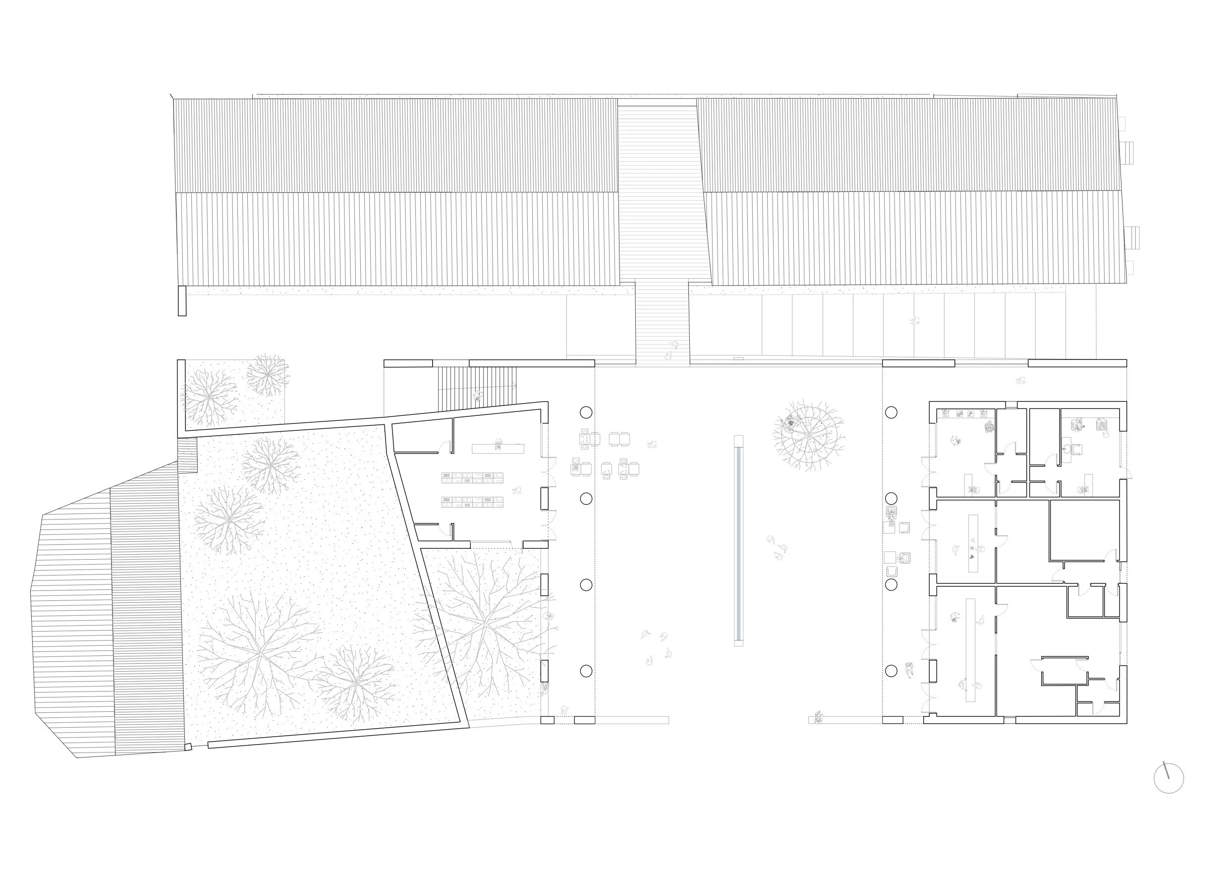Construire au pied de l’abbaye de Saint- Hilaire, c’est évidemment construire avec humilité dans le respect du monument. Cette attitude vaut pour le parti urbain comme pour le parti architectural qui ne doivent pas troubler les abords du site mais dont le rôle, au contraire, est d’y mettre de l’ordre en organisant qualitativement les vues sur le monument historique. Ce projet n’est pas seulement un projet de bâtiment mais d’abord un projet d’espace public qui doit favoriser la polyvalence des usages. Il nous permet de répondre à la présence monumentale de l’abbaye par un vide qui rassemblera la communauté.